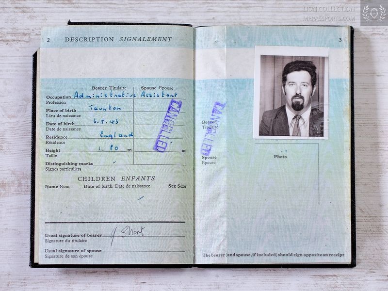 - Cover Markings: The passport cover would have featured the Royal Coat of Arms, with the words “British Passport” above and “United Kingdom of Great Britain and Northern Ireland” below.
